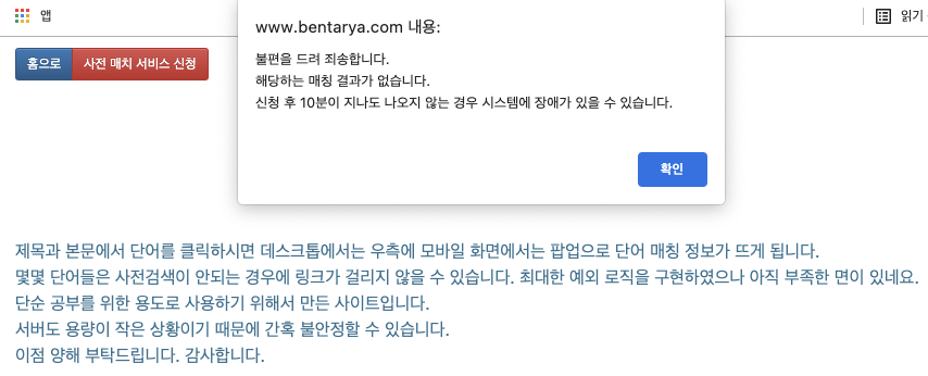 여기까지 설명 드리구요. 해당 기능은 제가 개인적으로 인니어 공부하면서 단어 찾기 귀찮아서 만든 서비스 입니다.