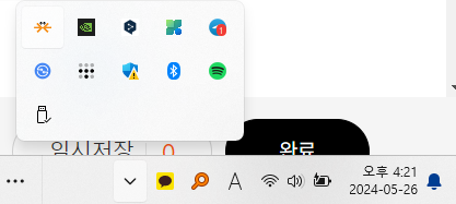 노랑 아이콘을 클릭하시면 설정화면으로 가게 되고 우클릭을 하게 되면 메뉴가 뜹니다.